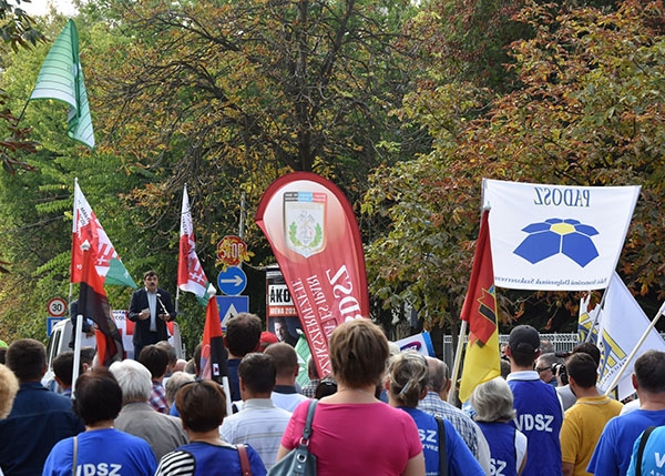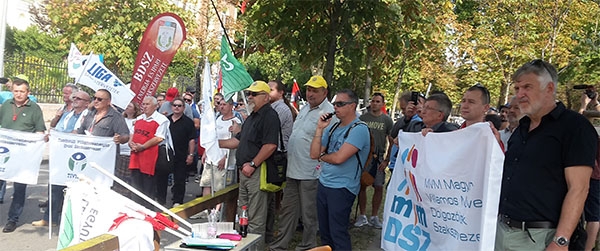 A következő hozzászóló Rabi Ferenc, a BDSZ elnöke akinek kiemeltük következő gondolatait: „Tiltakozni jöttünk,mert önkéntes módon beleszóltak a legfontosabb szakszervezeti értékek egyikébe, a szociális párbeszéd függetlenségébe, autonómiájába. Szociális párbeszédet akarunk, a párbeszédben megállapodni, a megállapodásokat kollektív szerződésben rögzíteni! Ezért dolgozunk a globális nagy cégek tulajdonosaival, menedzsmentje képviselőivel szemben, ha kell, akkor kemény fellépésekkel is!”